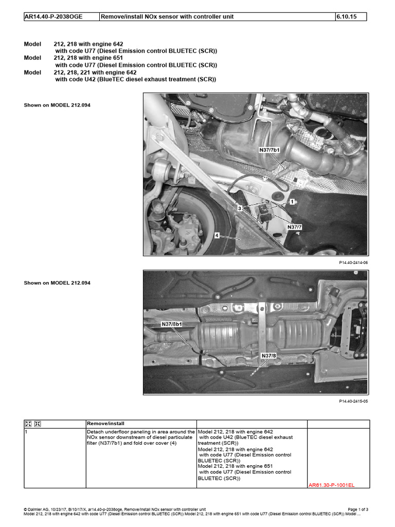 © Daimler AG, 10/23/17, B/10/17/X, ar14.40-p-2038oge, Remove/install NOx sensor with controller unit Page 1 of 3