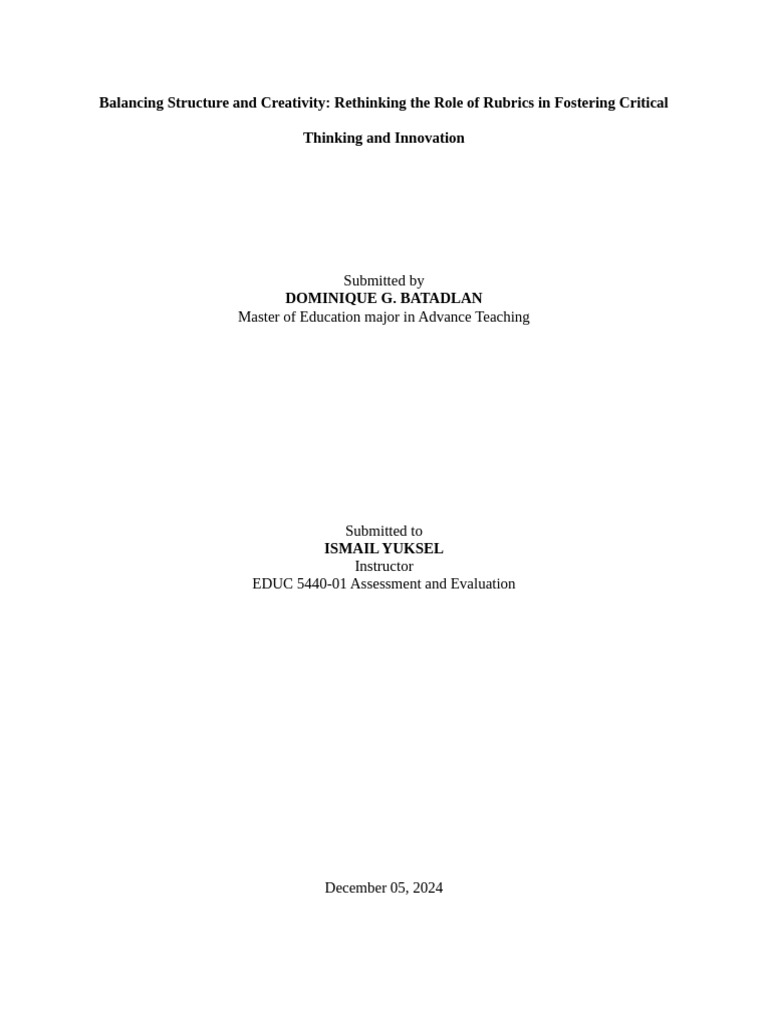 Balancing Structure and Creativity: Rethinking the Role of Rubrics in Fostering Critical