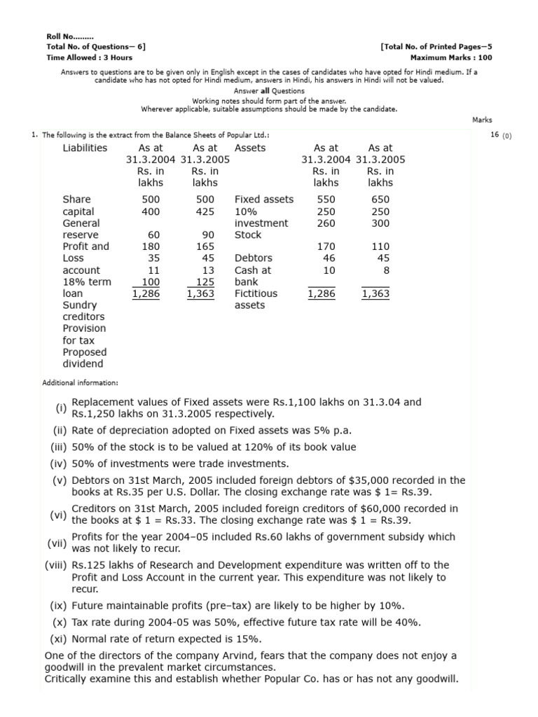 1. The following is the extract from the Balance Sheets of Popular Ltd.: 16 (0)