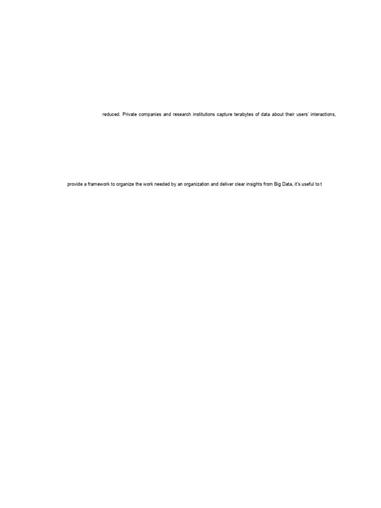In order to provide a framework to organize the work needed by an organization and deliver clear insights from Big Data, it’s useful to t hink of
