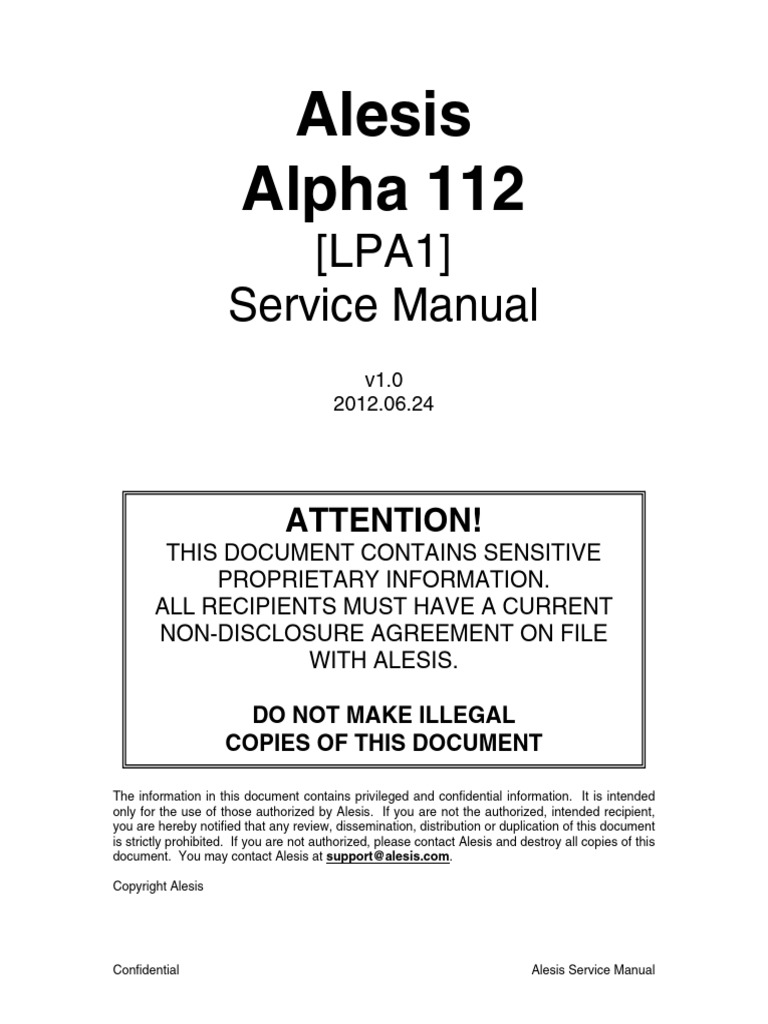 is strictly prohibited. If you are not authorized, please contact Alesis and destroy all copies of this