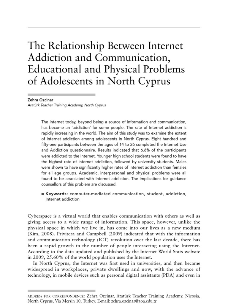 The Relationship Between Internet Addiction and Communication, Educational and Physical Problems of Adolescents in North Cyprus
