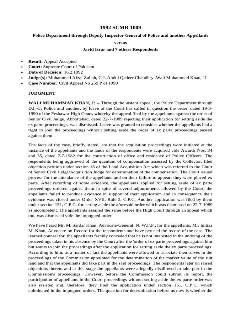 WALI MUHAMMAD KHAN, J: -- Through the instant appeal, the Police Department through