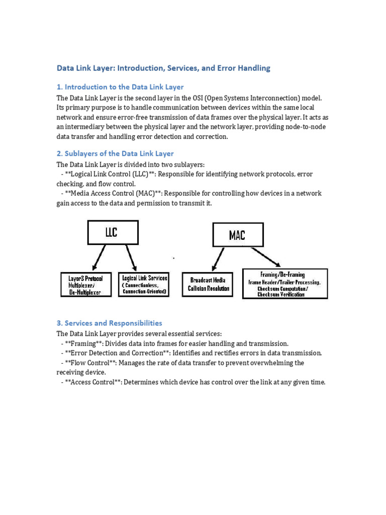 - **Framing**: Divides data into frames for easier handling and transmission.