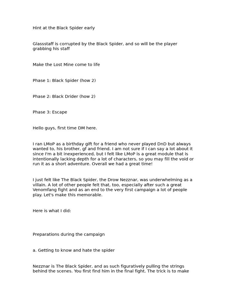 I just felt like The Black Spider, the Drow Nezznar, was underwhelming as a