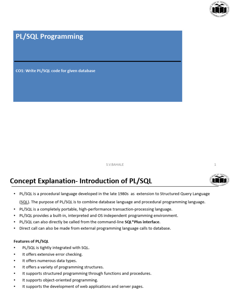 Concept Explanation- Introduction of PL/SQL