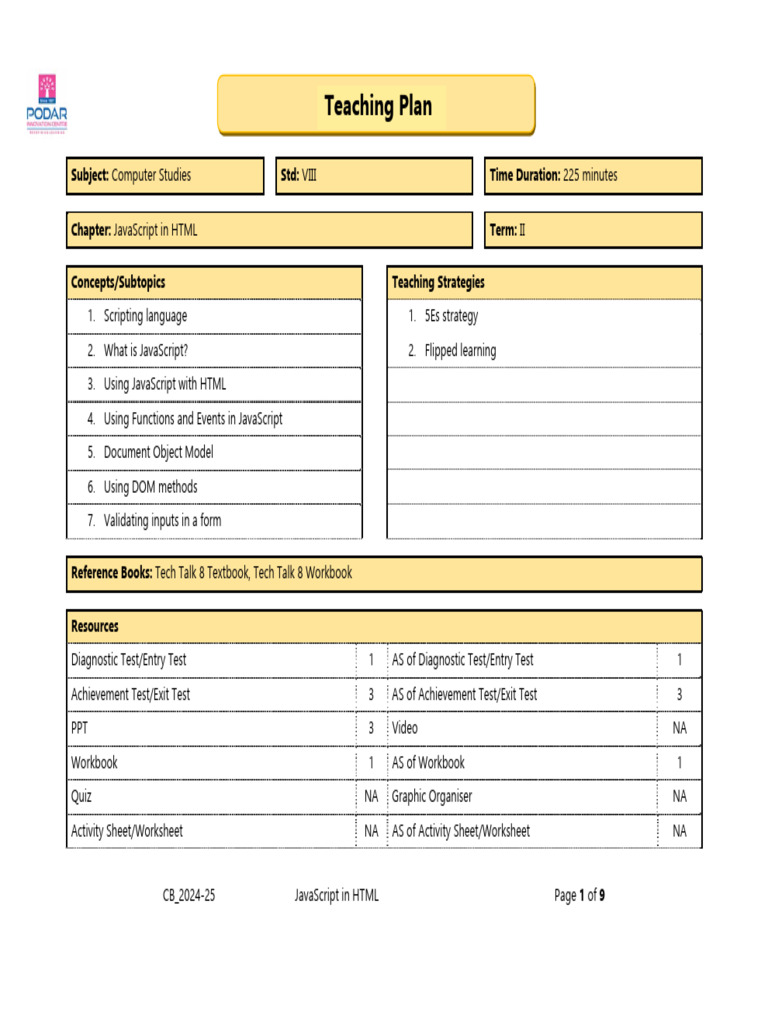 CB_2024-25 JavaScript in HTML Page 1 of 9