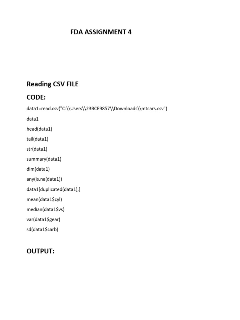 data1=read.csv("C:\\Users\\23BCE9857\\Downloads\\mtcars.csv")