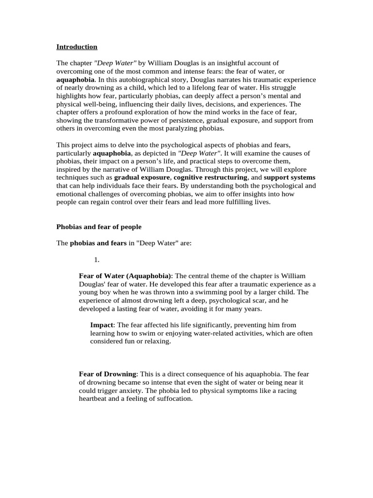 particularly aquaphobia, as depicted in "Deep Water". It will examine the causes of