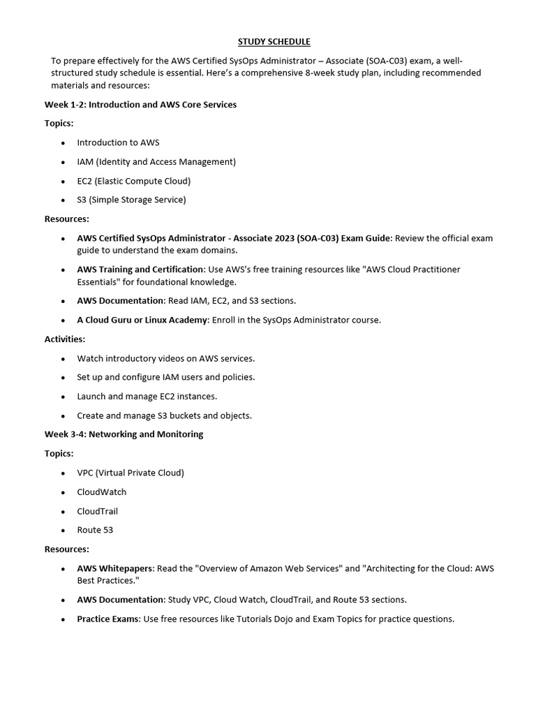 By following this schedule and utilizing the recommended materials, you’ll be well-prepared for the SOA-C03