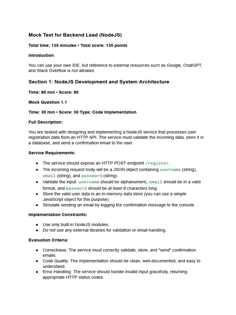 Mock Test for Backend Lead (NodeJS)