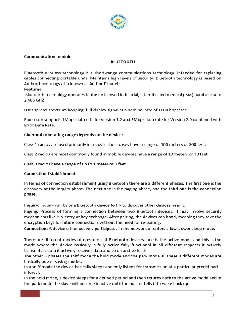 In terms of connection establishment using Bluetooth there are 3 different phases. The first one is the