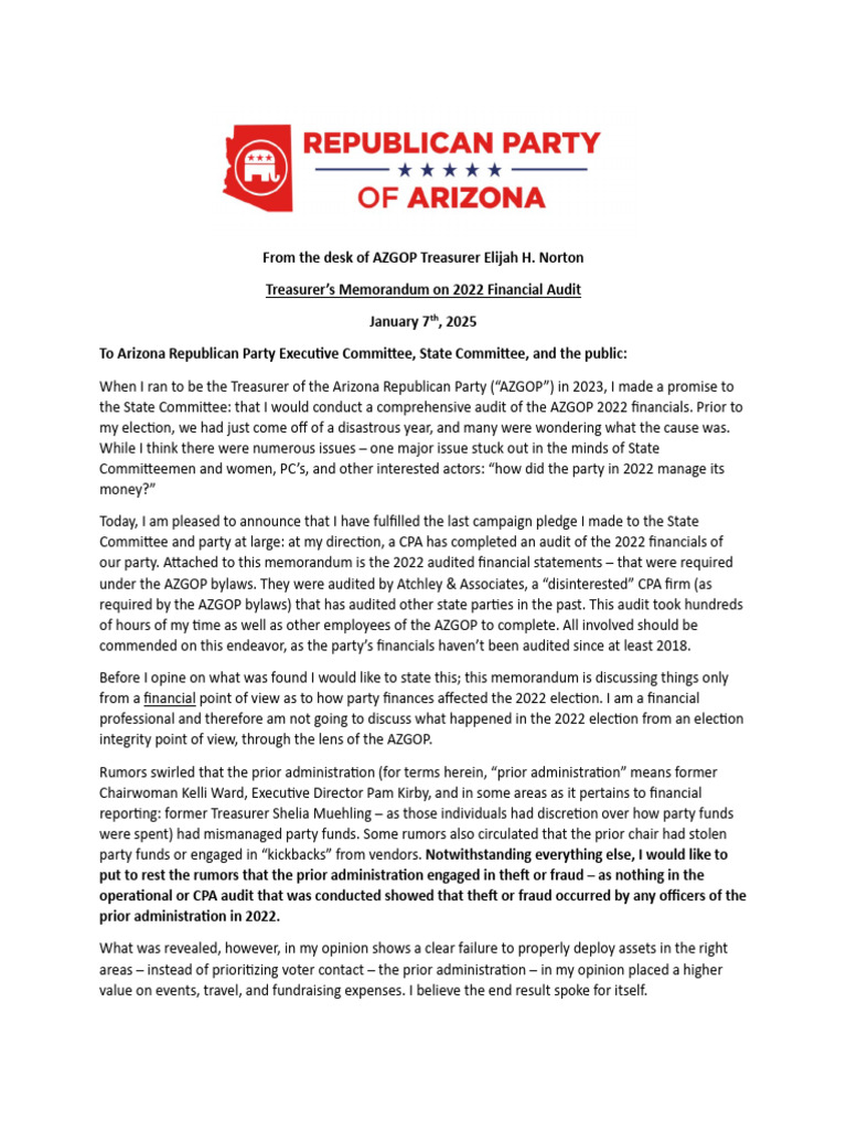 the State Committee: that I would conduct a comprehensive audit of the AZGOP 2022 financials. Prior to