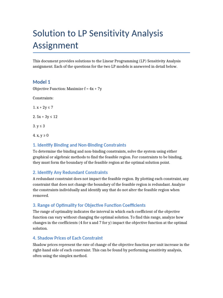 This document provides solutions to the Linear Programming (LP) Sensitivity Analysis