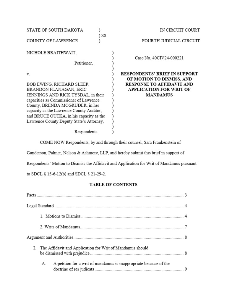 The Commissioners rejected the petition, citing that the under South Dakota Supreme Court case