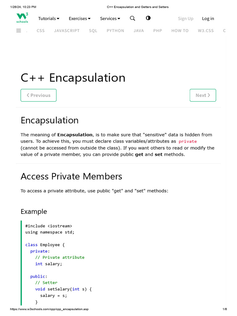 https://www.w3schools.com/cpp/cpp_encapsulation.asp 1/6