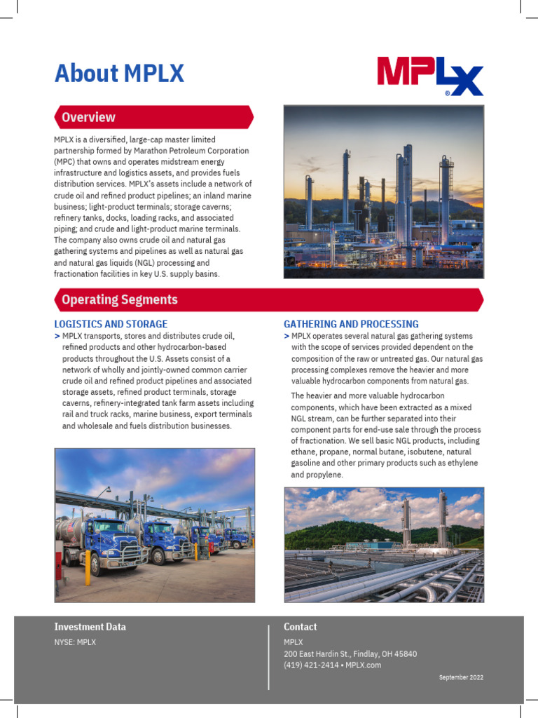 > MPLX transports, stores and distributes crude oil, > MPLX operates several natural gas gathering systems