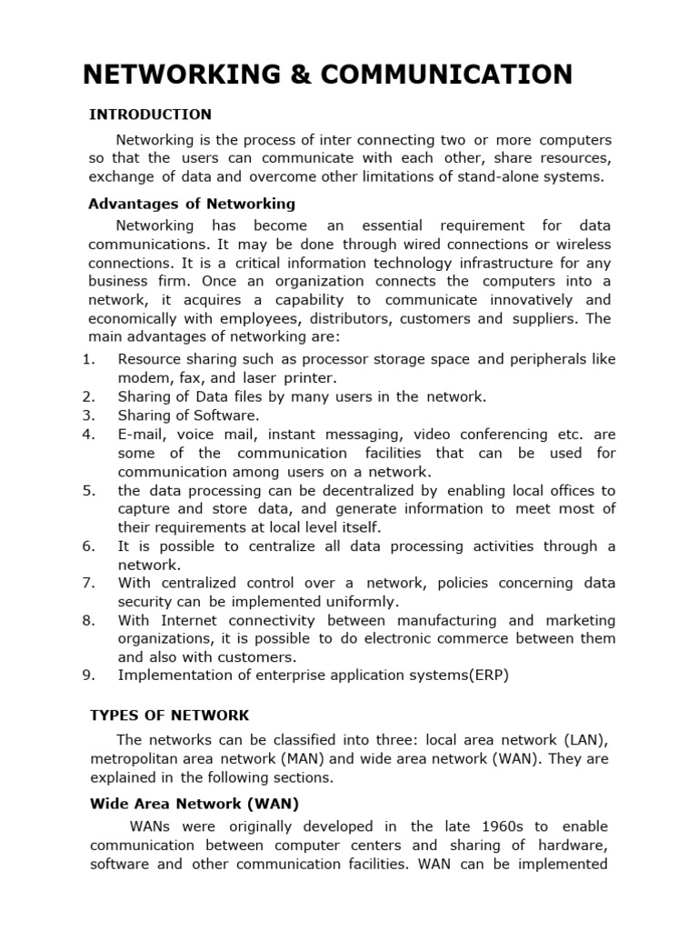 metropolitan area network (MAN) and wide area network (WAN). They are