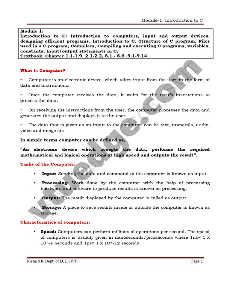 designing efficient programs. Introduction to C, Structure of C program, Files