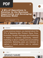 In developing a business plan we also have to consider the importance of the 4M’s of operations in all business