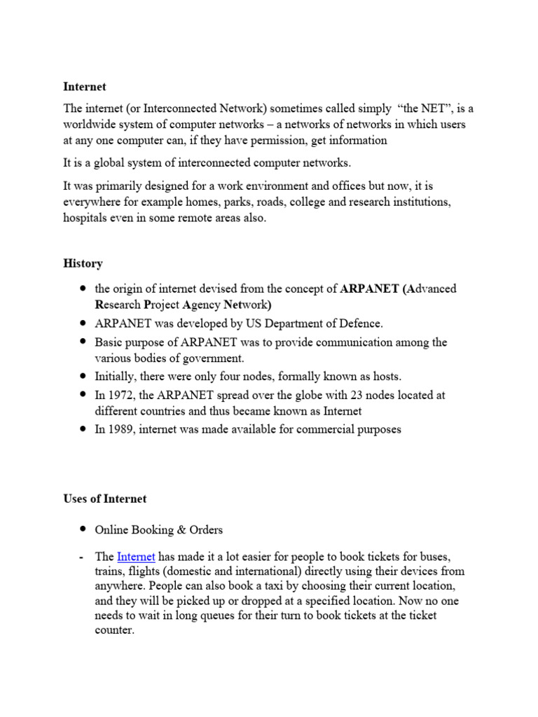 ● the origin of internet devised from the concept of ARPANET (Advanced