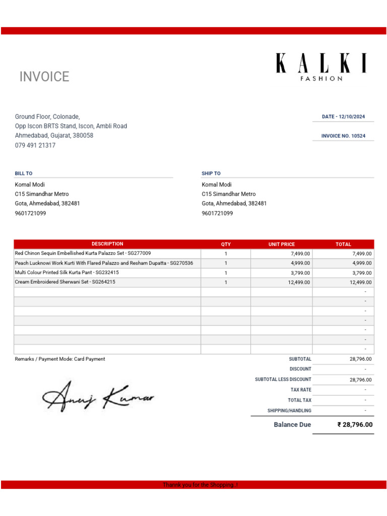 Ahmedabad, Gujarat, 380058 INVOICE NO. 10524
