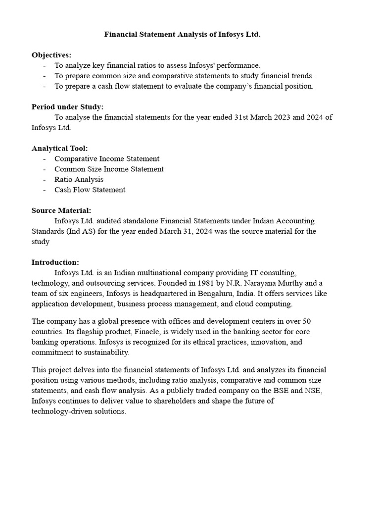 This project delves into the financial statements of Infosys Ltd. and analyzes its financial