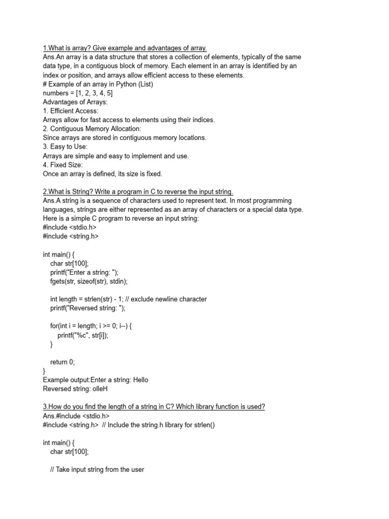 Ans.An array is a data structure that stores a collection of elements, typically of the same
