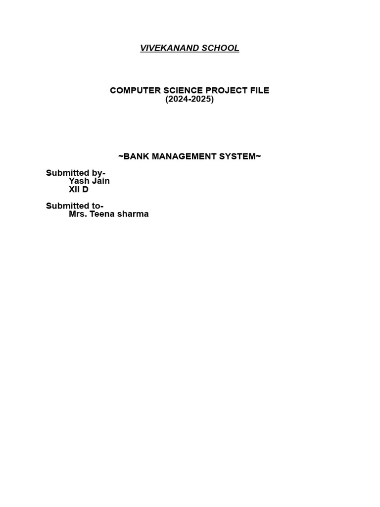 BANK MANAGEMENT SYSTEM under the supervision of MRS.