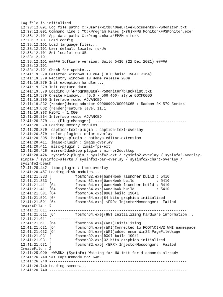12:41:21.591 [64 fpsmon64.exe] <ERR> InjectorMessenger: Failed