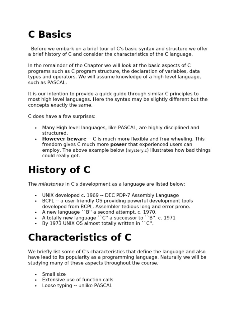 In the remainder of the Chapter we will look at the basic aspects of C