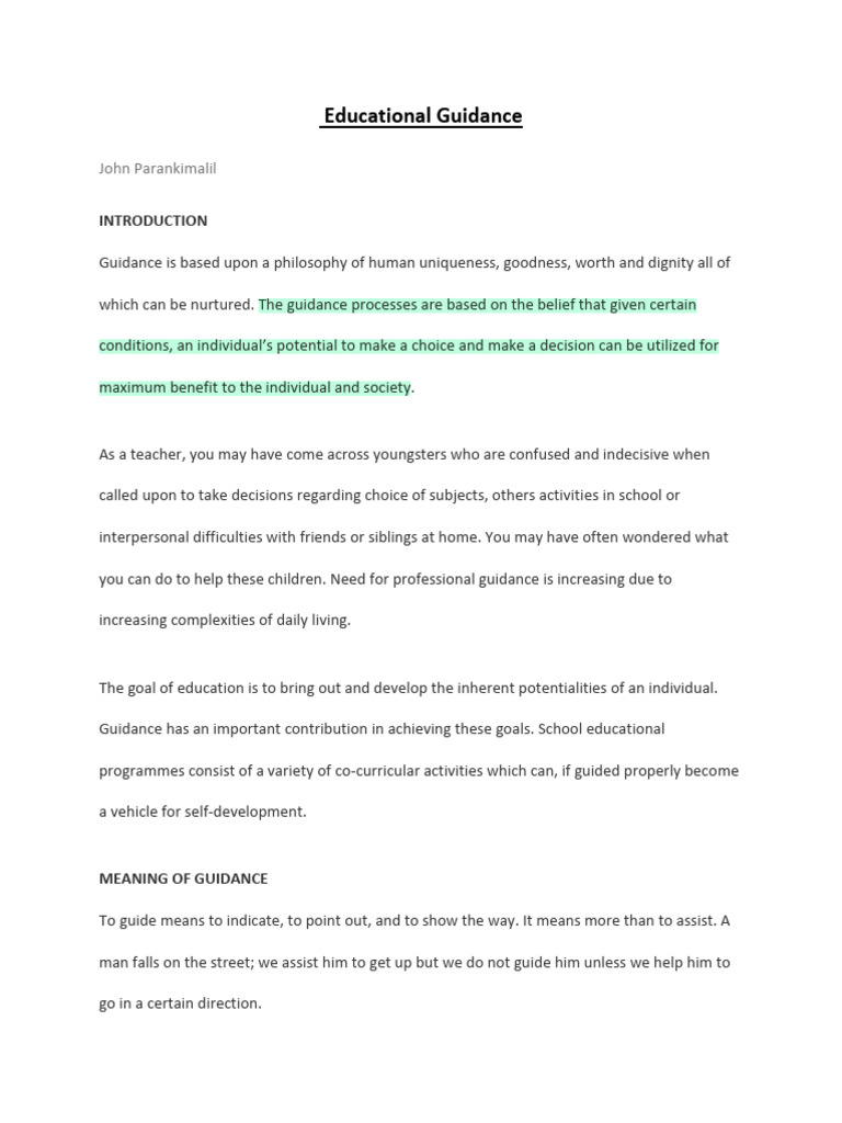 potential than he uses. Guidance programme aid the individual in the discovery of a hidden