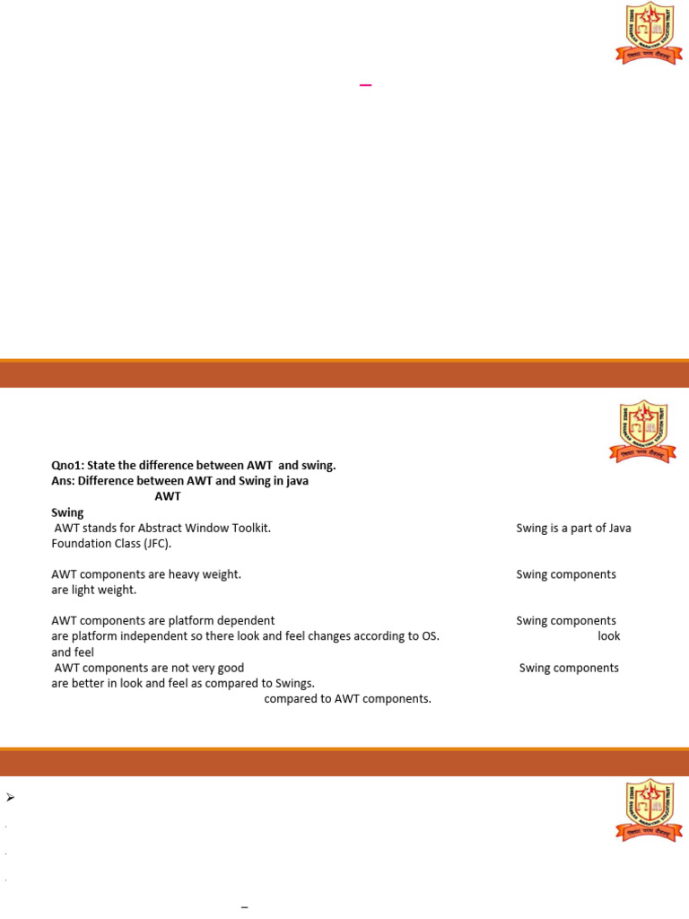 ∙ Swing contains wide variety of new components such as tables, trees, sliders, progress bars and so on.