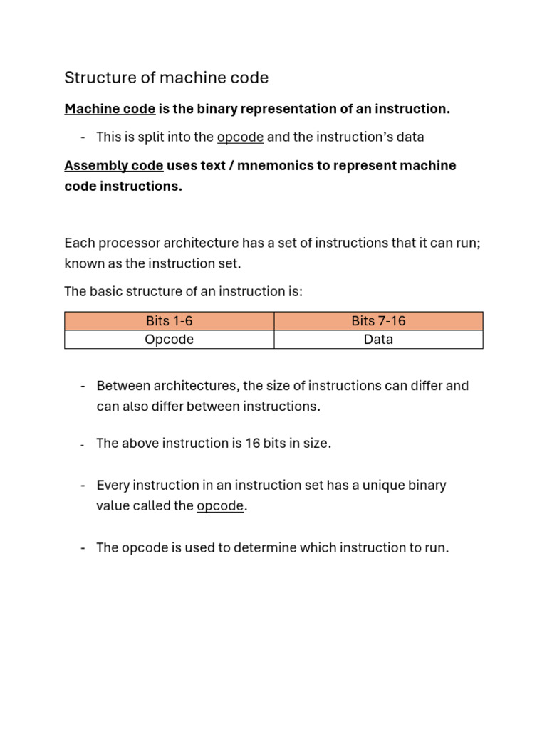 Structure of machine code