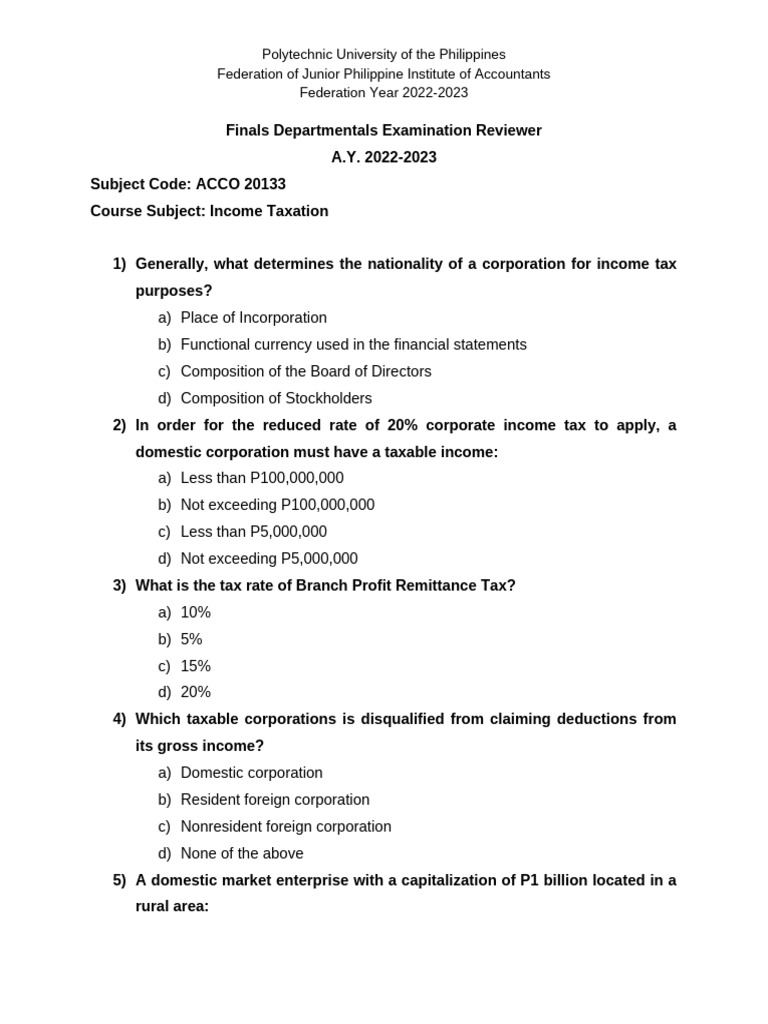 Note that the rate to be used is 20% as amended by the CREATE Act as the
