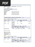 INSTITUTION CREDIT: SUBJ NO. COURSE TITLE CRED GRD PTS R