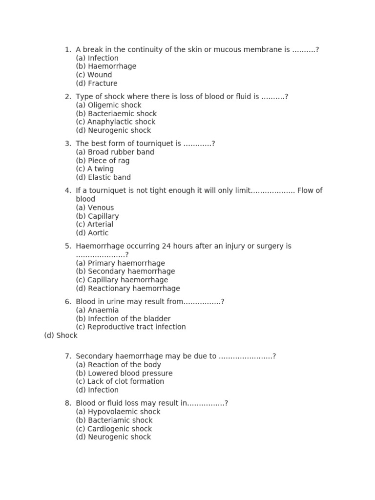 2. Type of shock where there is loss of blood or fluid is ……….?