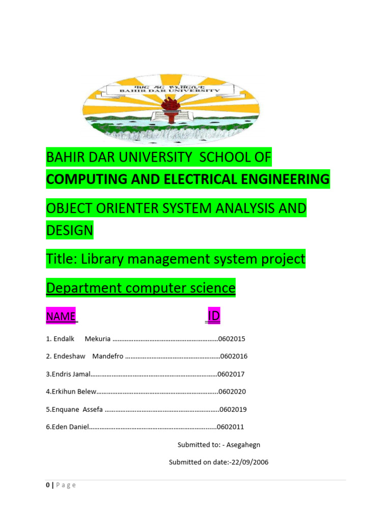BAHIR DAR UNIVERSITY SCHOOL OF