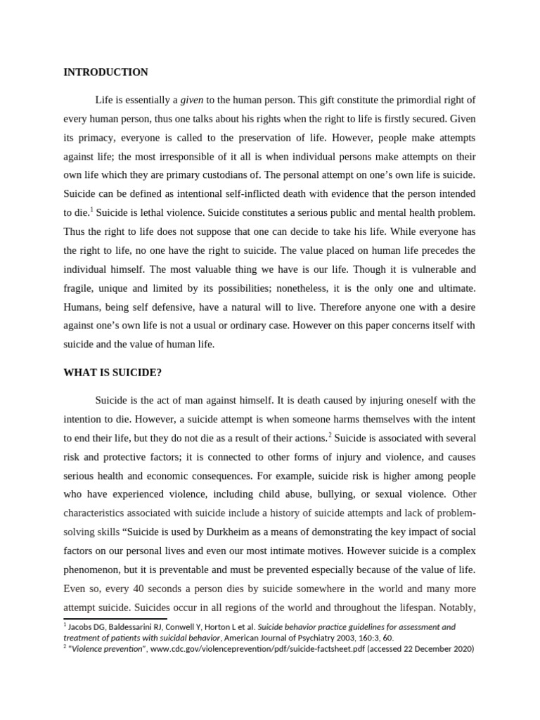 to die.1 Suicide is lethal violence. Suicide constitutes a serious public and mental health problem.