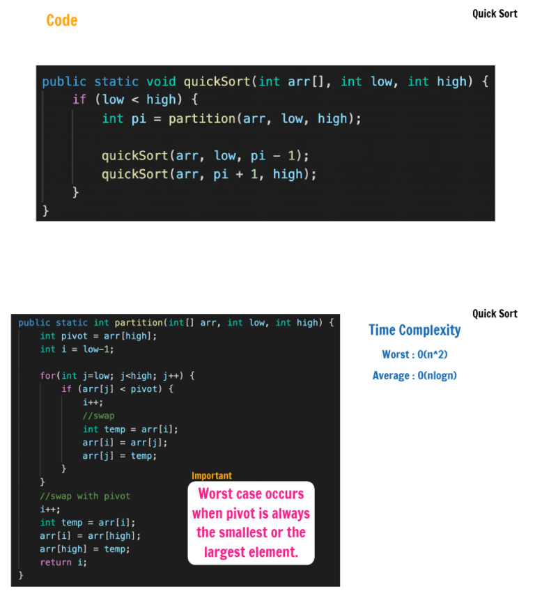 Code Quick Sort Time Complexity Worst : O(n^2) Average : O(nlogn)