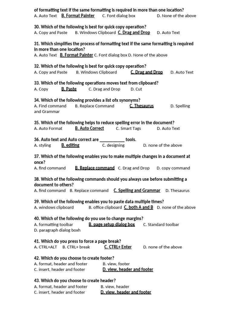 35. Which of the following helps to reduce spelling error in the document?