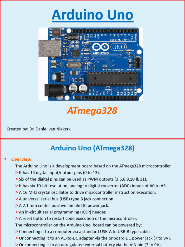 ̶ The Arduino Uno is a development board based on the ATmega328 microcontroller.