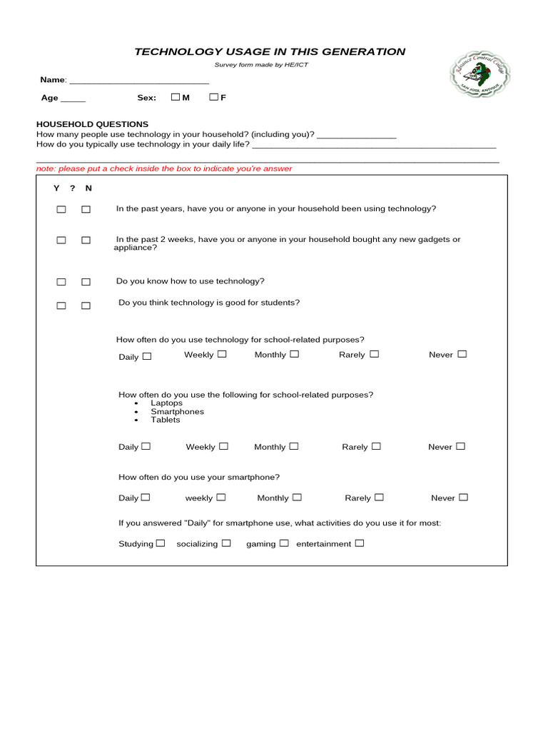 Daily □ weekly □ Monthly □ Rarely □ Never □