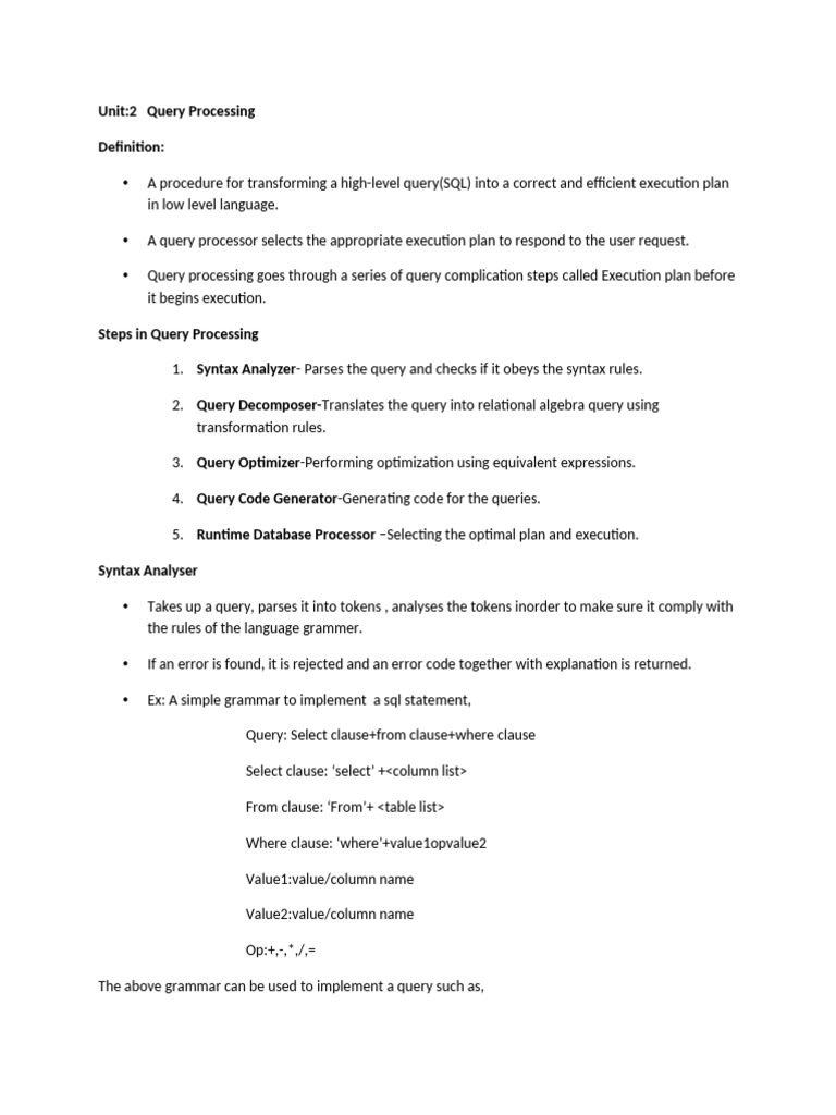 • Query is lexically and syntactically analysed using the compilers(parsers) to find out syntax