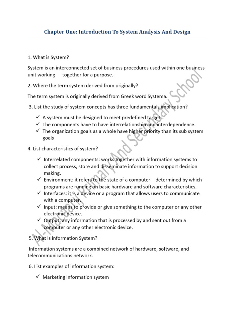Chapter One: Introduction To System Analysis And Design