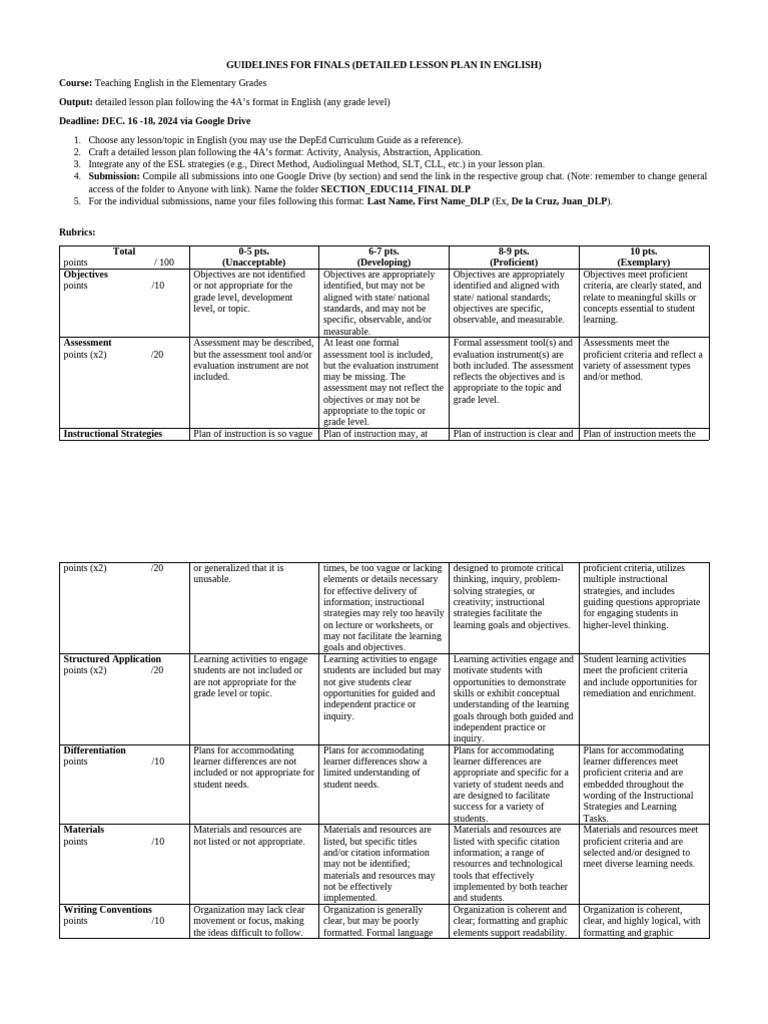 GUIDELINES FOR FINALS (DETAILED LESSON PLAN IN ENGLISH)