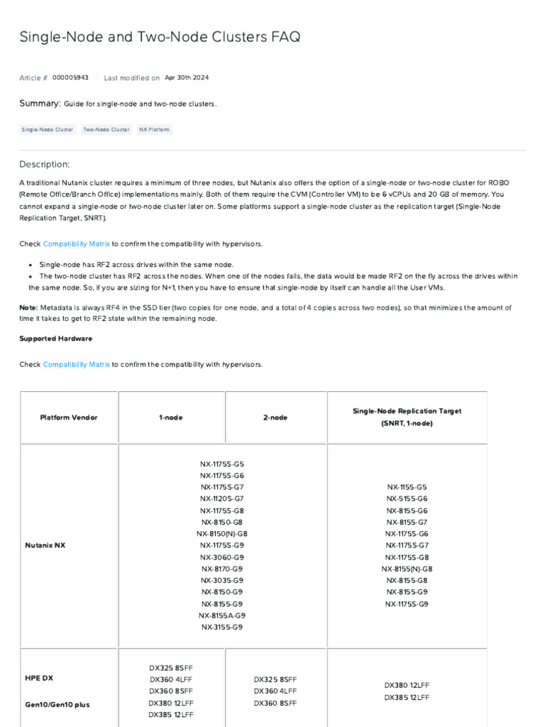 A traditional Nutanix cluster requires a minimum of three nodes, but Nutanix also offers the option of a single-node or two-node cluster for ROBO