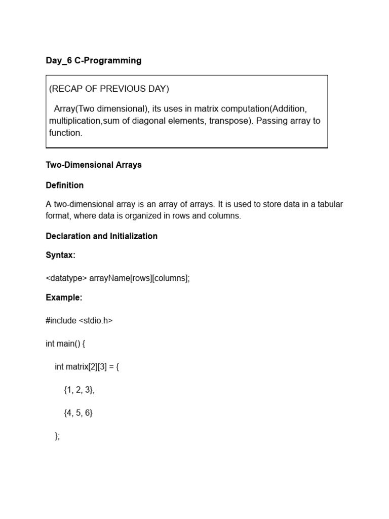 Array(Two dimensional), its uses in matrix computation(Addition,