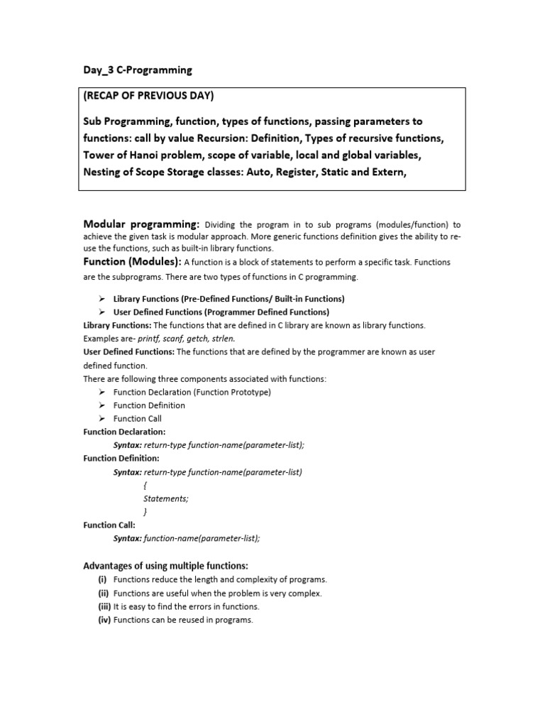 functions: call by value Recursion: Definition, Types of recursive functions,