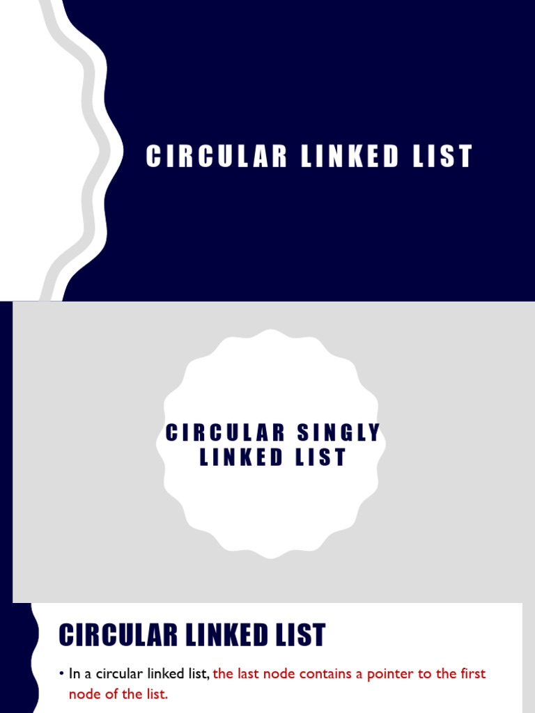 • The last node of the list contains the address of the first node of the list. The first node of the